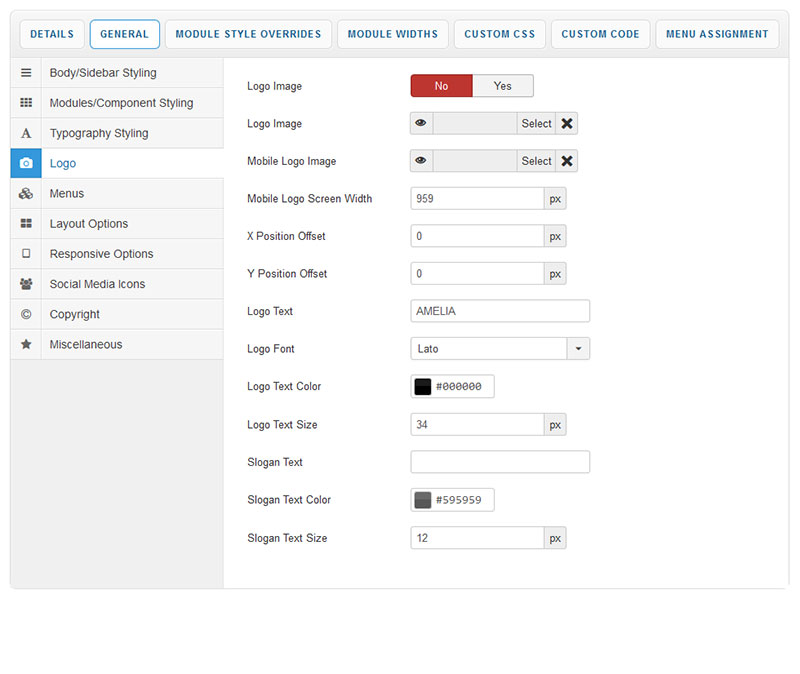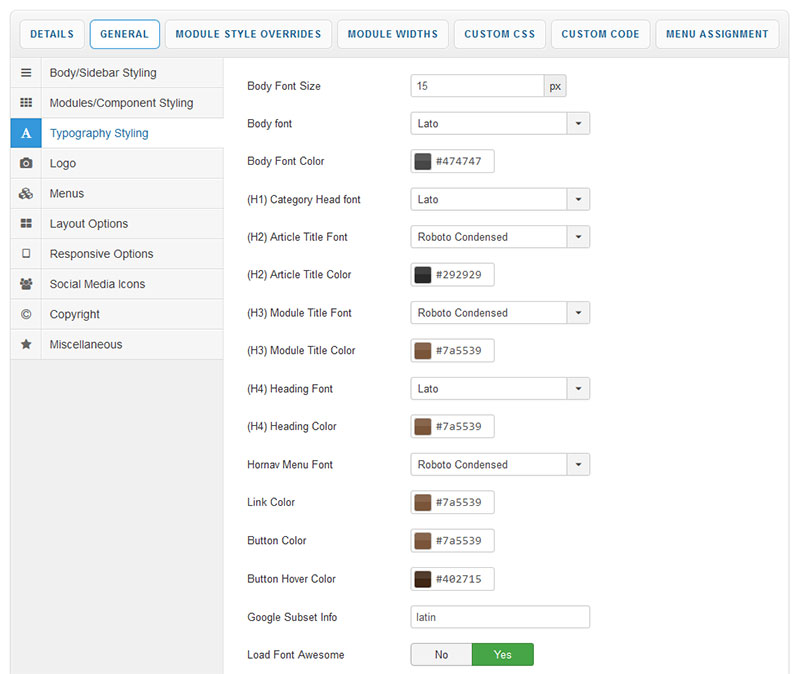 Your template parameters can be access directly from your Template Manager giving you access to a host of features including a selection of template styles, some colour choosers to help customise your template headers and links, a number of layout options and easy to use logo settings.